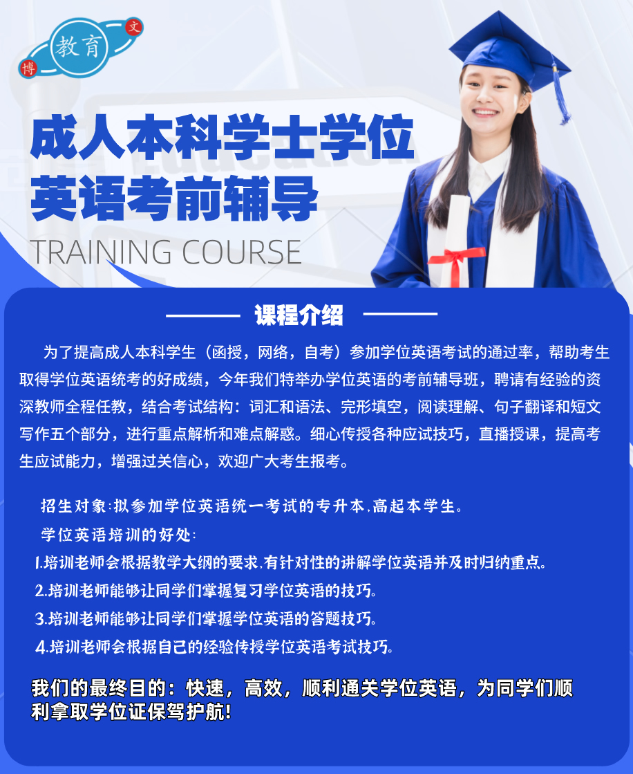 注册登录,自选课程,选学位外语,下单,支付报名。